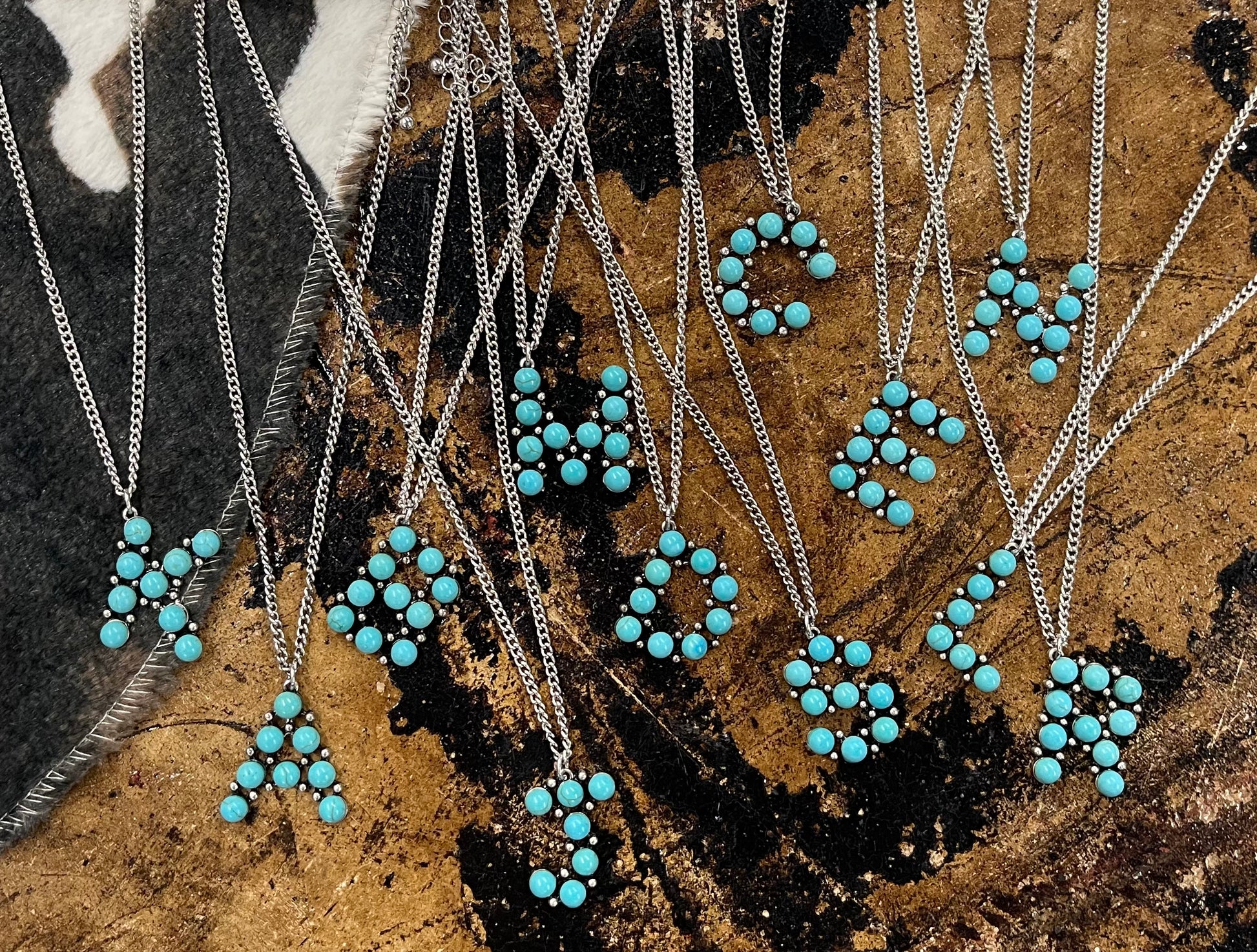 The Punchy Initial Necklace - Turquoise