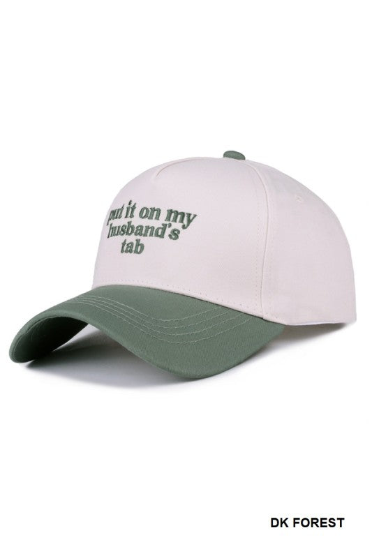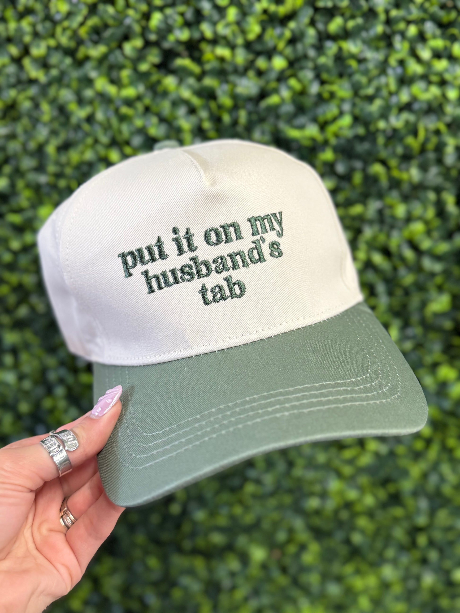 Get ready to rock this party with the Put It On My Husband's Tab Hat! Featuring a two-tone embroidered design that reads "PUT IT ON MY HUSBAND'S TAB", this trucker cap will add some playful humor to any occasion. Go ahead, treat yourself (and your wallet) - it's on your husband's tab!