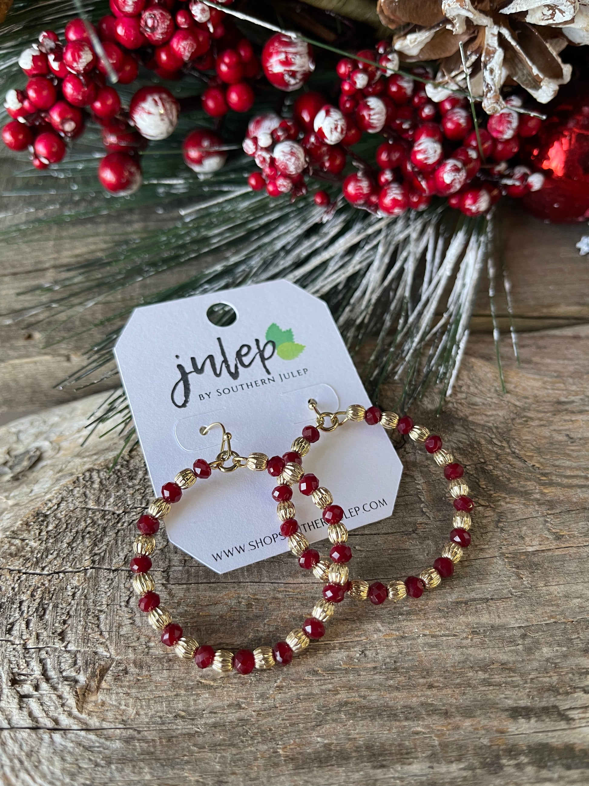 - Faceted glass beaded hoop teardrop earrings with gold bead accents