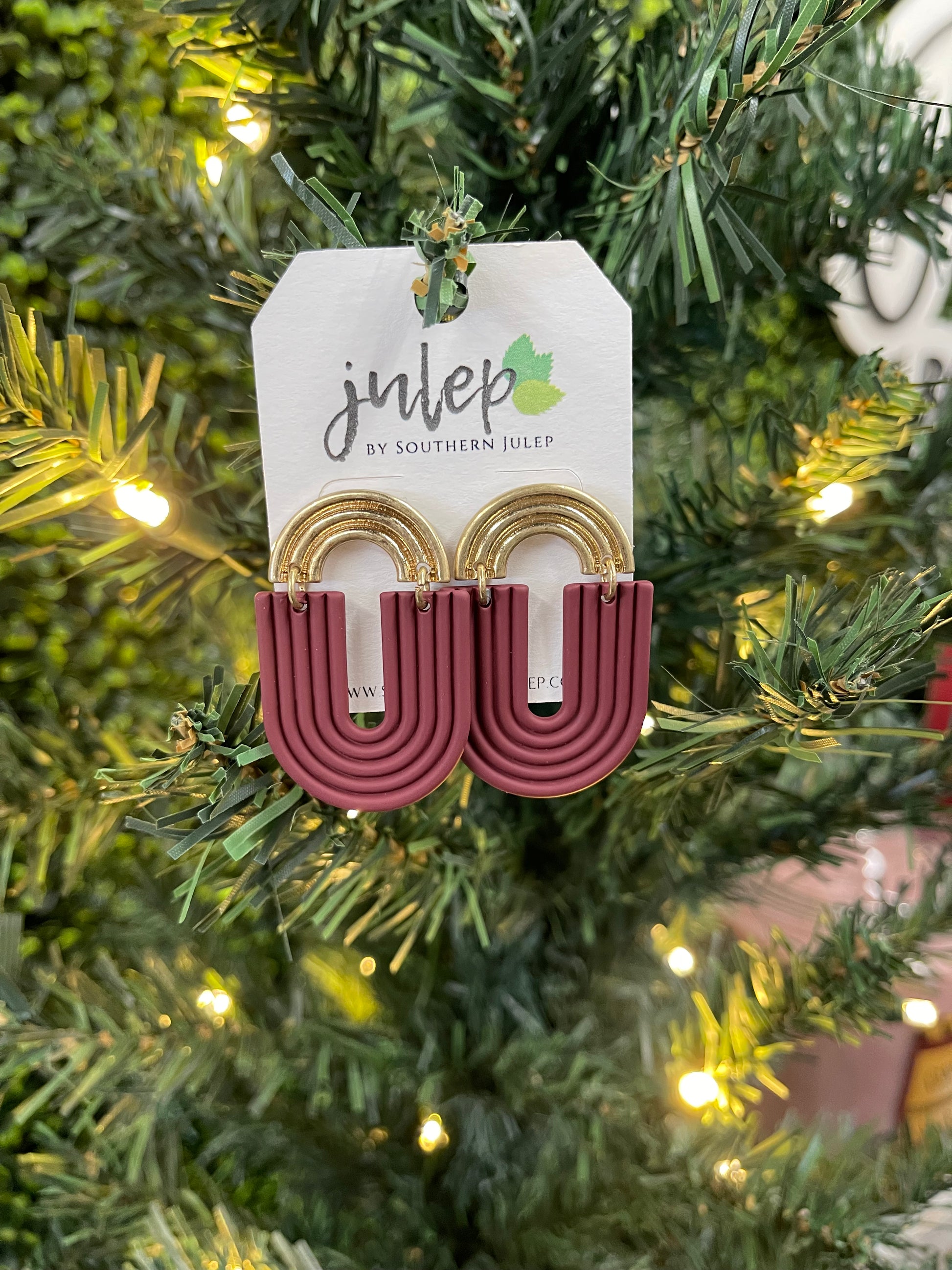 Introducing the Tailynn Earrings in stunning burgundy red, perfect for the upcoming holiday season. Made with gold accents, these earrings will add a touch of elegance and festivity to any outfit. Elevate your look with these beautifully crafted earrings.