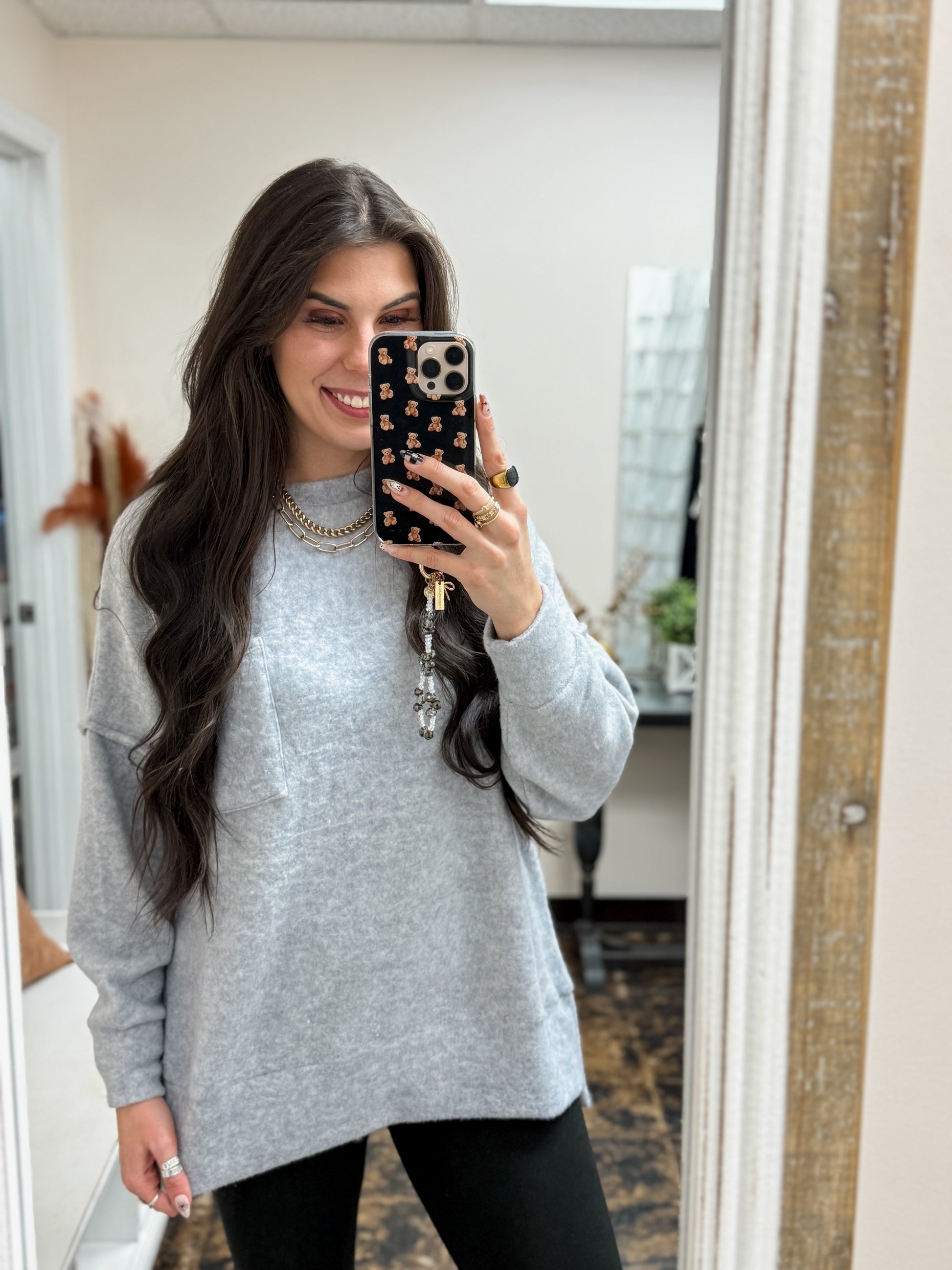 Cozy up with The Tangee Melange Sweater, your new favorite oversized companion! Featuring playful seam accents on the sleeves and center back, plus a cute flat chest pocket for a little extra charm. The hi-low hem adds a fun twist to your look, while the soft, brushed melange fabric keeps you comfy all day long. Perfect for relaxed vibes and effortless style!