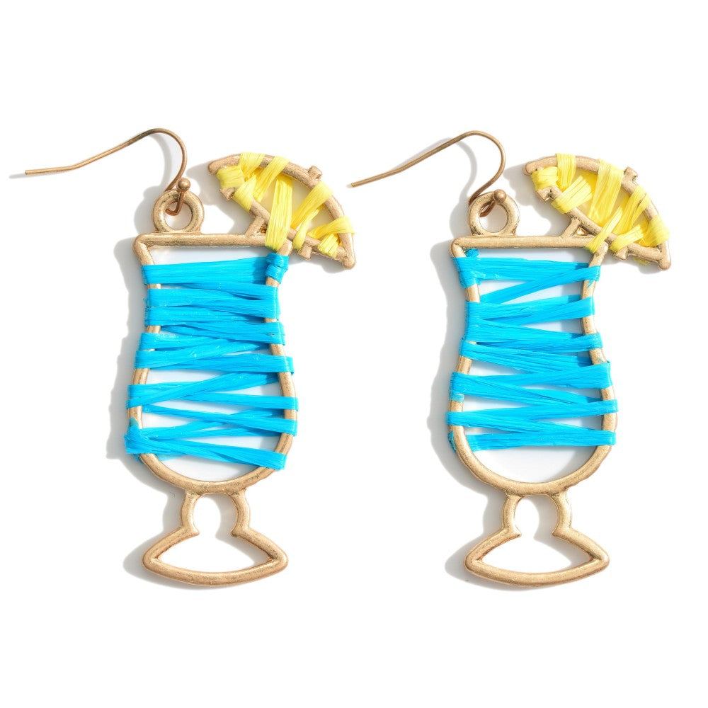 The Tropical Drink Raffia Wrapped Statement Earrings - Blue