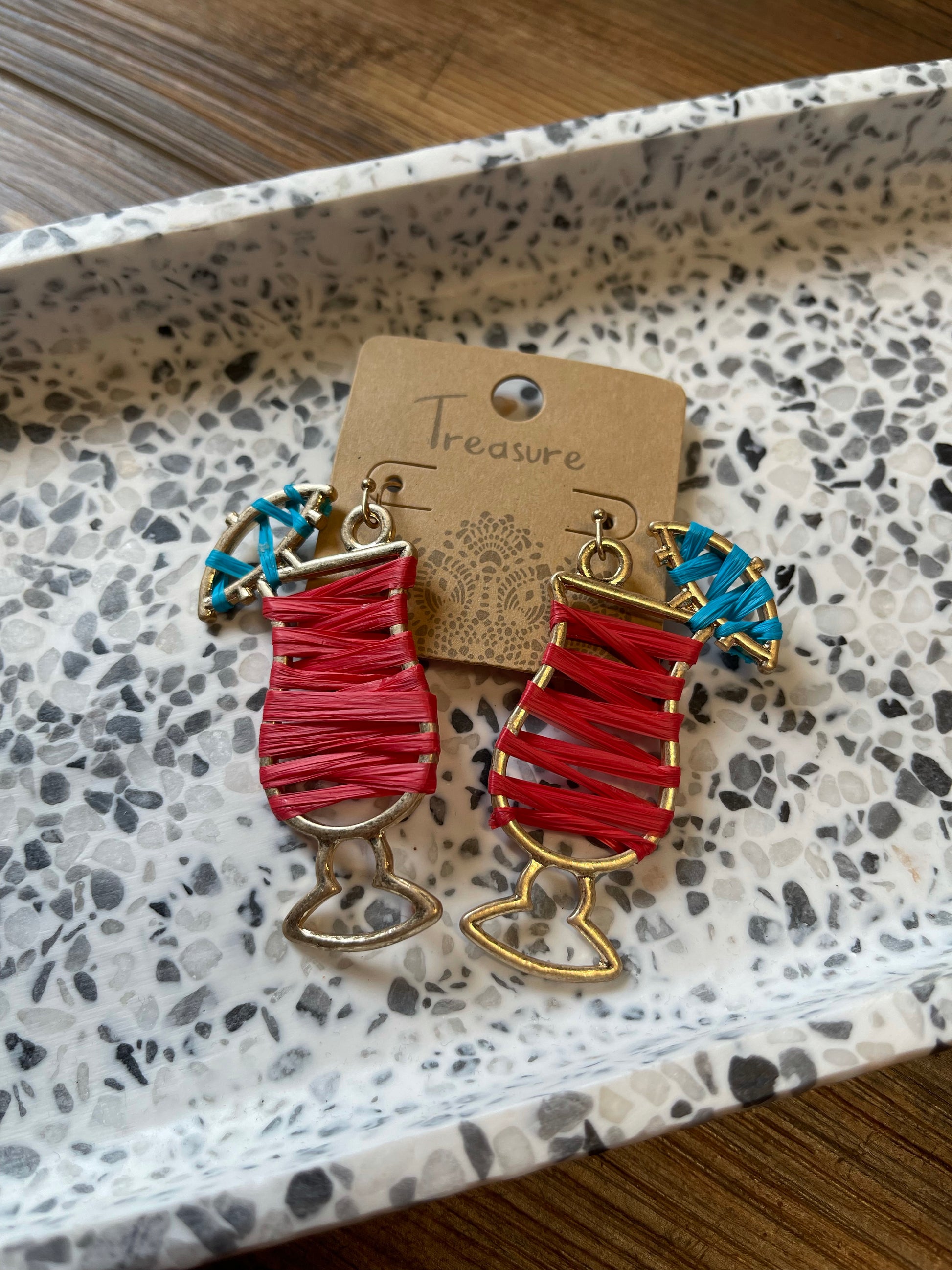 The Tropical Drink Raffia Wrapped Statement Earrings - Red
