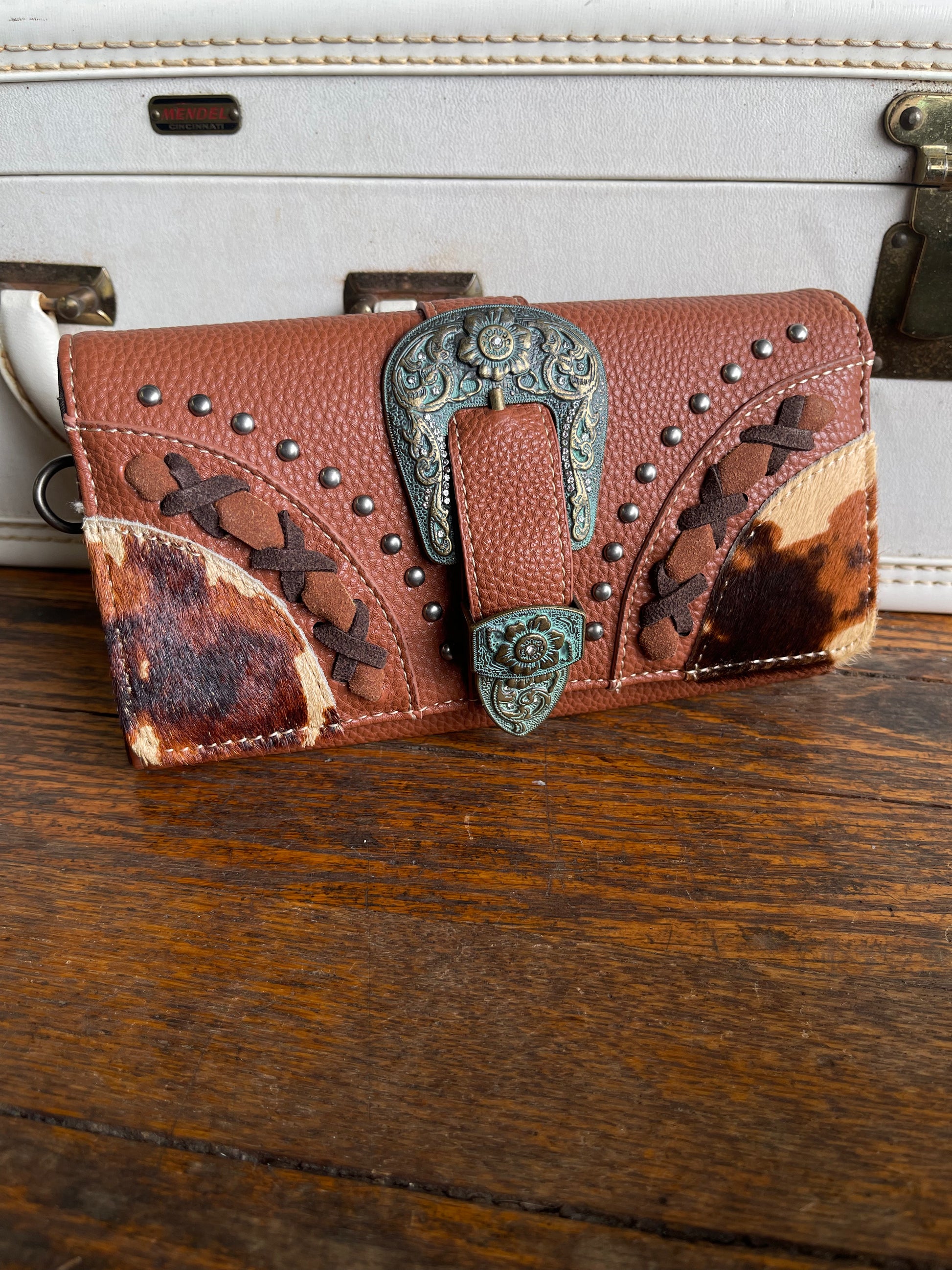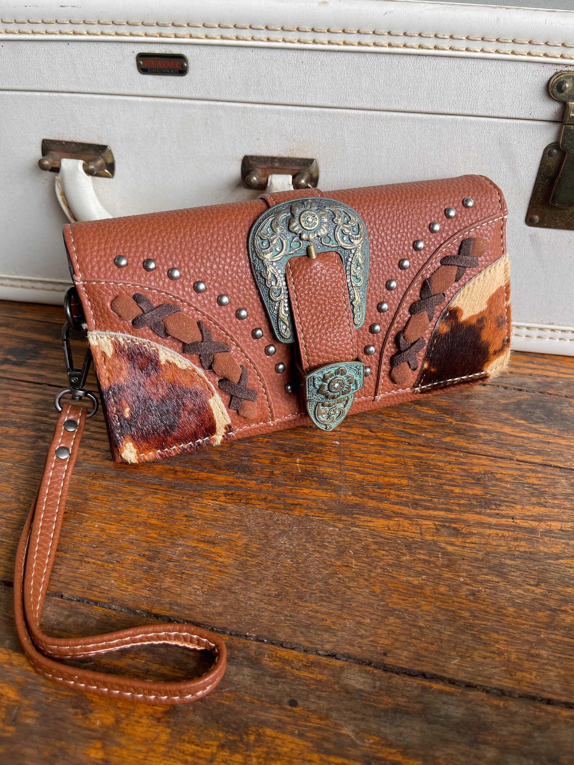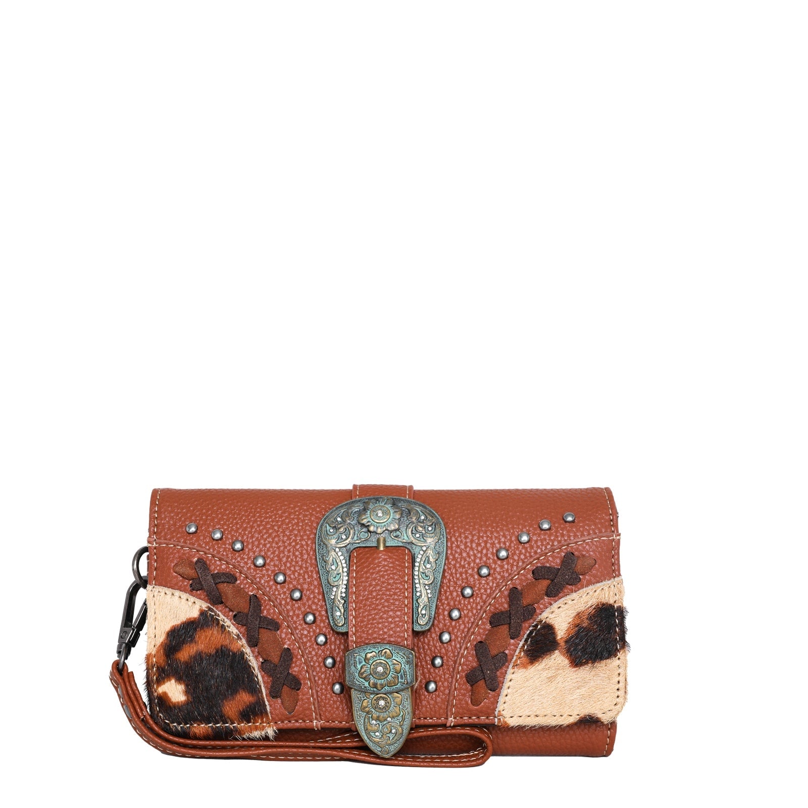 Trinity Ranch Hair-On Cowhide Buckle Collection Wristlet Wallet - Brown