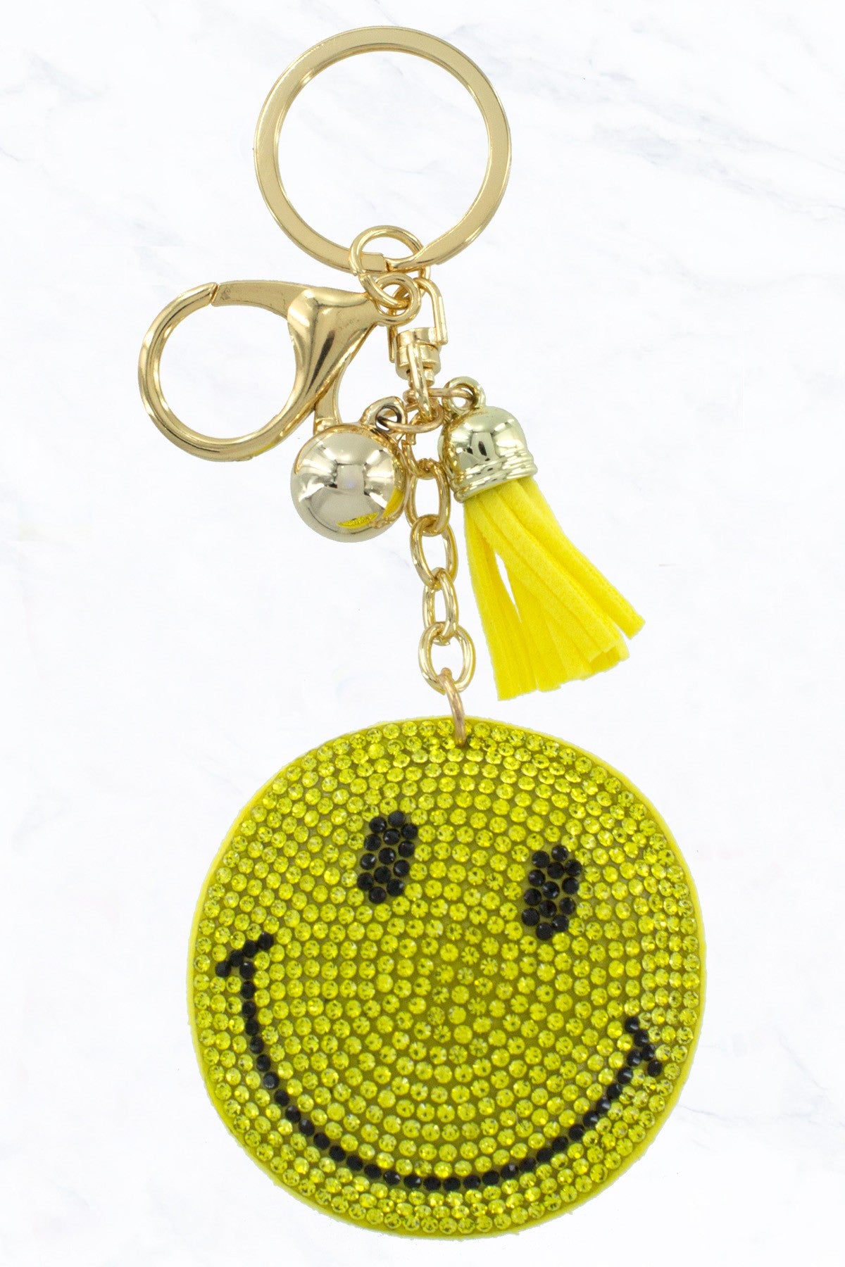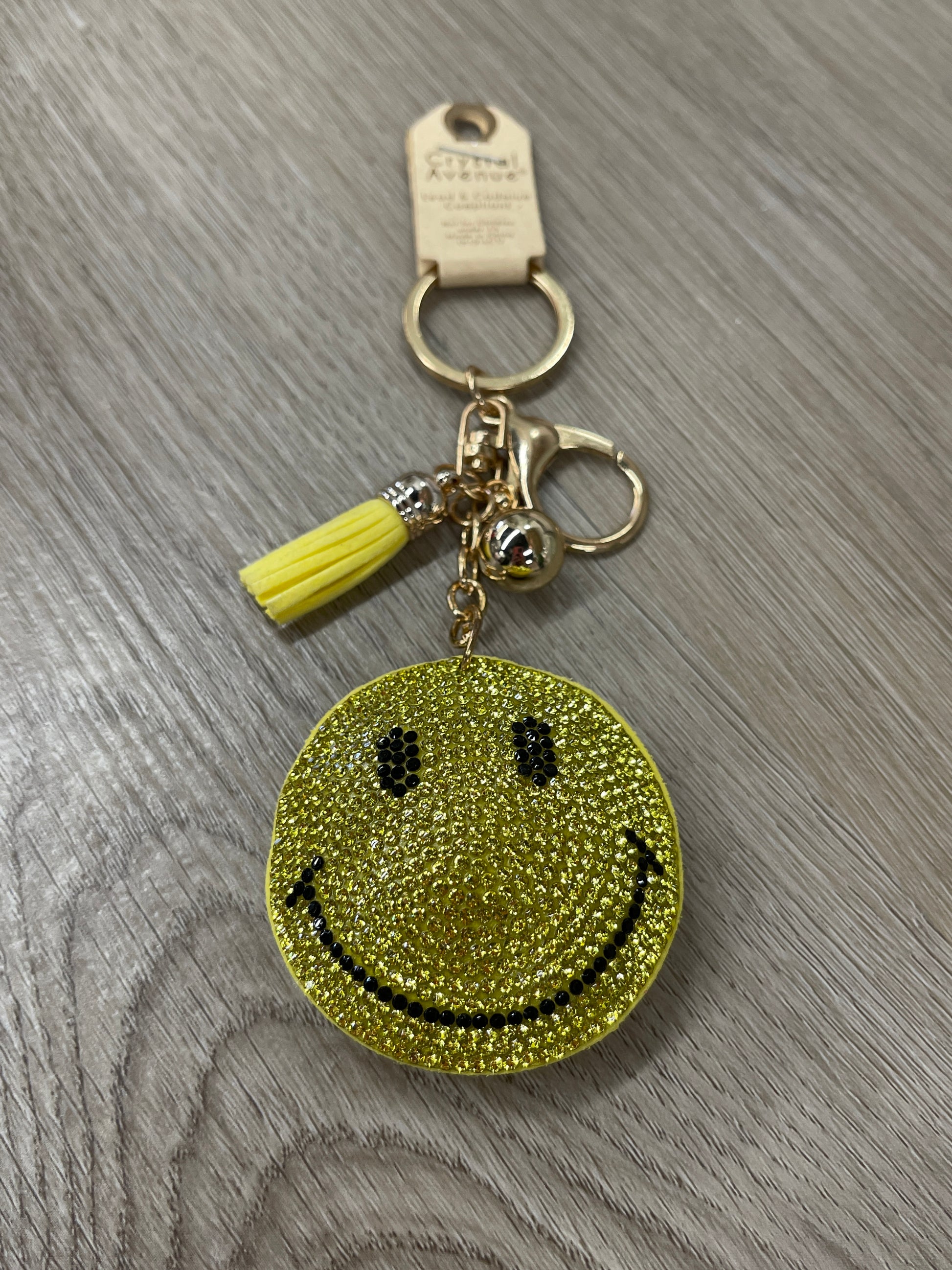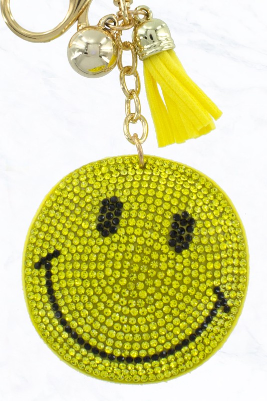 Yellow Smiley Face Crystal Puffy Keychain Purse Charm