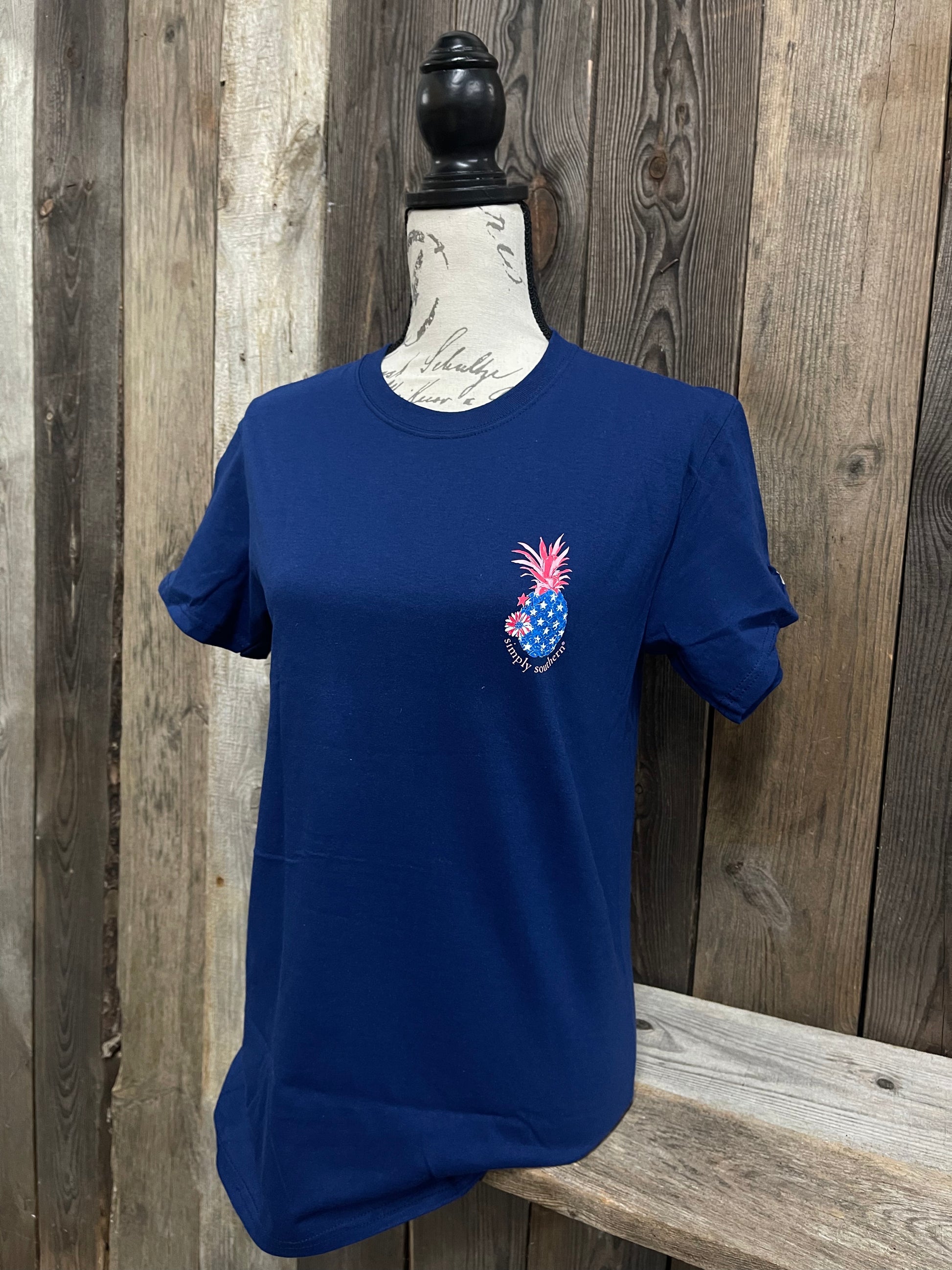 - Simply Southern pineapple logo on front left chest